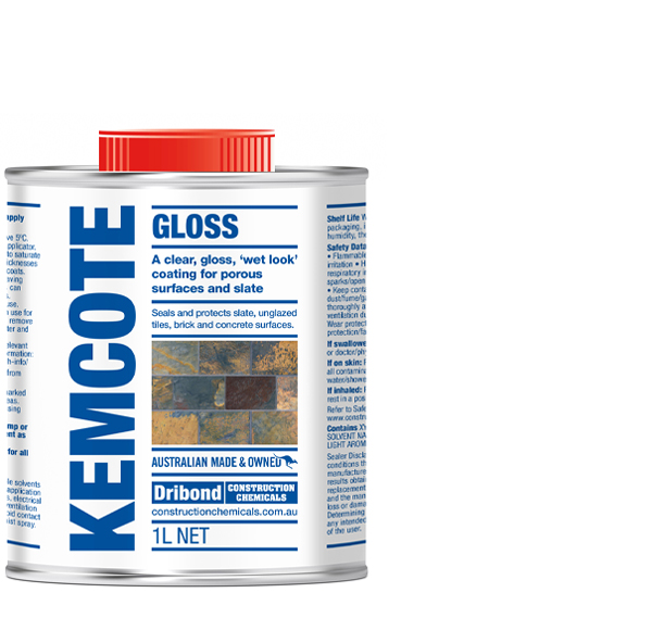 Kemcote Gloss Clear, gloss, ‘wet look’ coating for porous surfaces and slate.Coverage8-10m²/litre/coat CC Download IconTDSCC Download IconSDS Kemcote Gloss2026-03-05T13:32:04+10:30